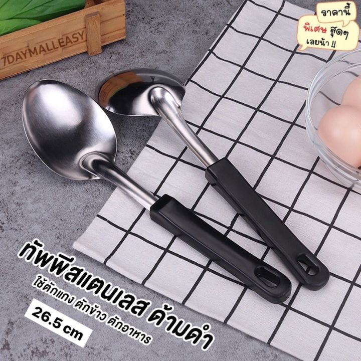 ทัพพีตักข้าว ตักอาหาร หัวสแตนเลสปลายพลาสติก สีสันสดใส
